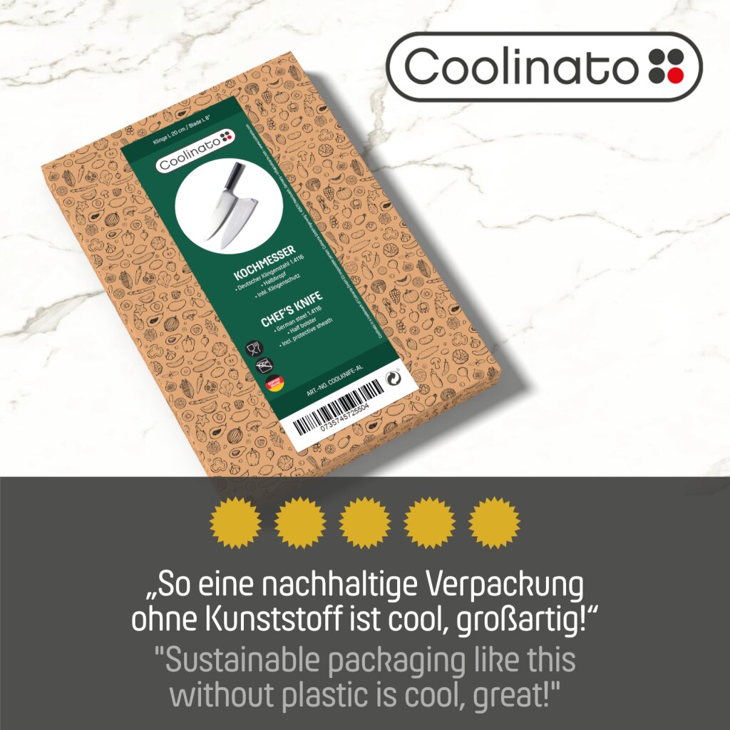 Das COOLINATO Profi Kochmesser 20cm ist sauscharf und der praktische Klingenschutz ist inklusive!
