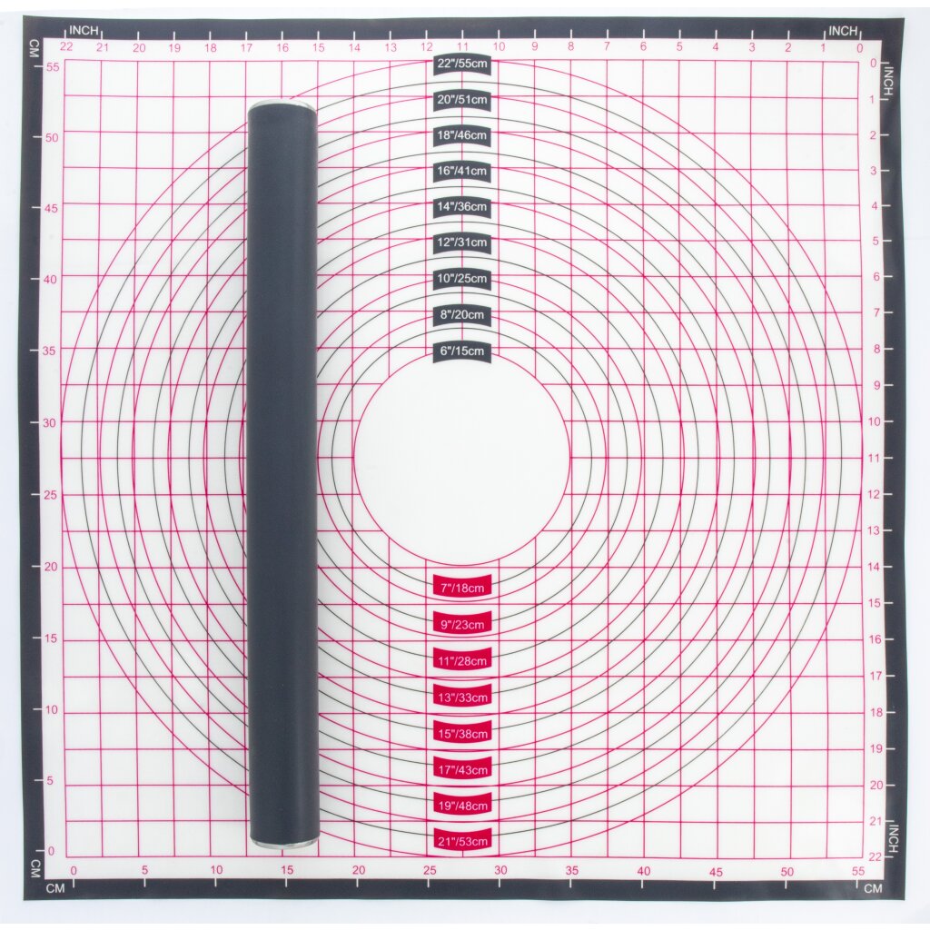 Die Silikon Backmatte ist Ihr langjähriger und strapazierfähiger Backengel! Aufgrund des hochwertigen Materials kann die Silikonbackmatte über Jahre immer und immer wieder verwendet werden. Sogar bei häufigem Gebrauch nimmt die Backunterlage keine Gerüche an - Keks bleibt Keks! Der extra große Teigroller bietet Ihnen jede Möglichkeit Ihre Backkreationen umzusetzen. Egal ob der große Pizzateig oder kleinere Teigformen ausgerollt werden, mit dem Teigroller sind Ihnen keine Grenzen gesetzt.